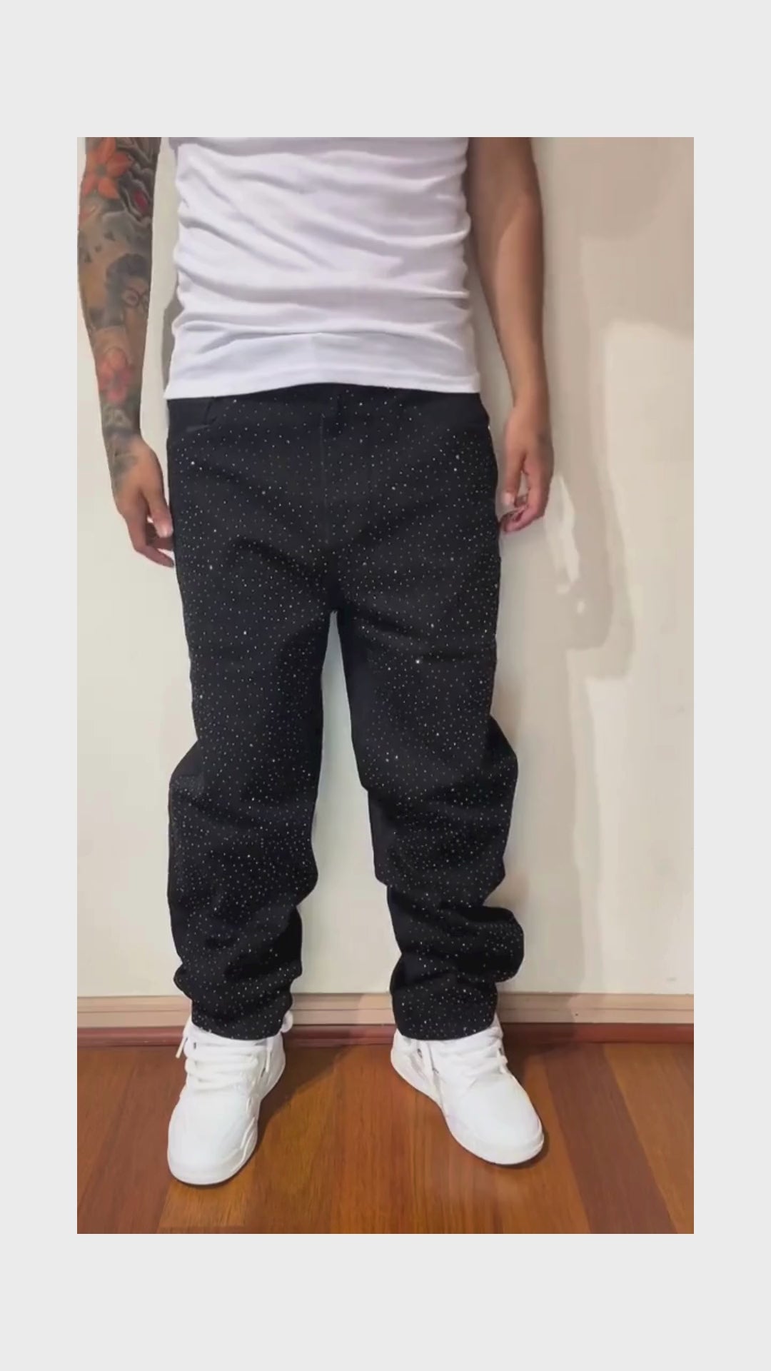 CALÇA BAGGY JEANS BLACK STRASS ✨✨