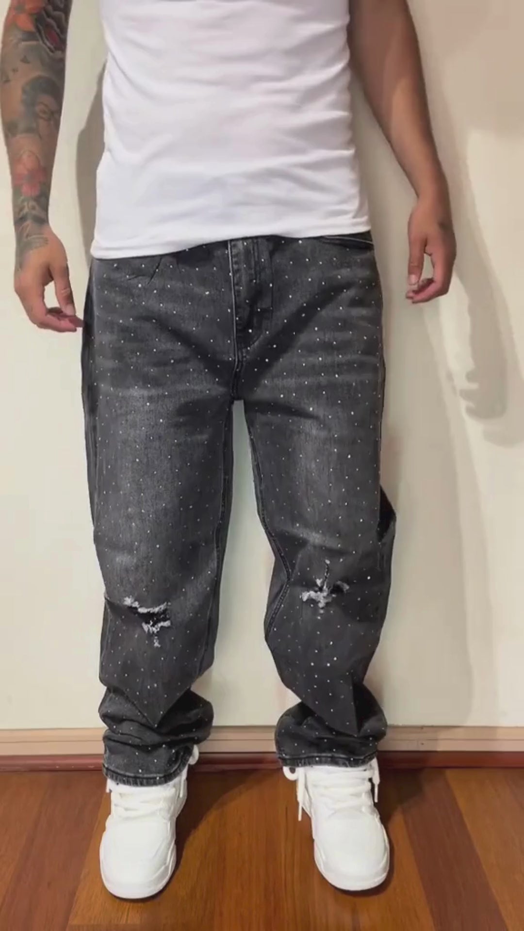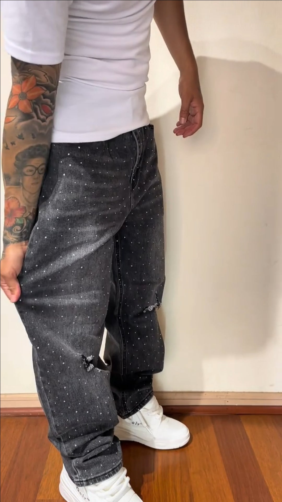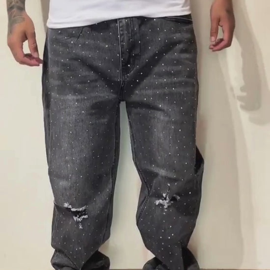 CALÇA BAGGY JEANS MARMORIZADA STRASS DESTRÓYED ✨✨