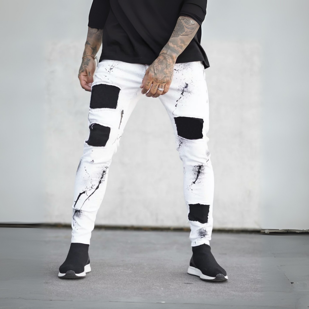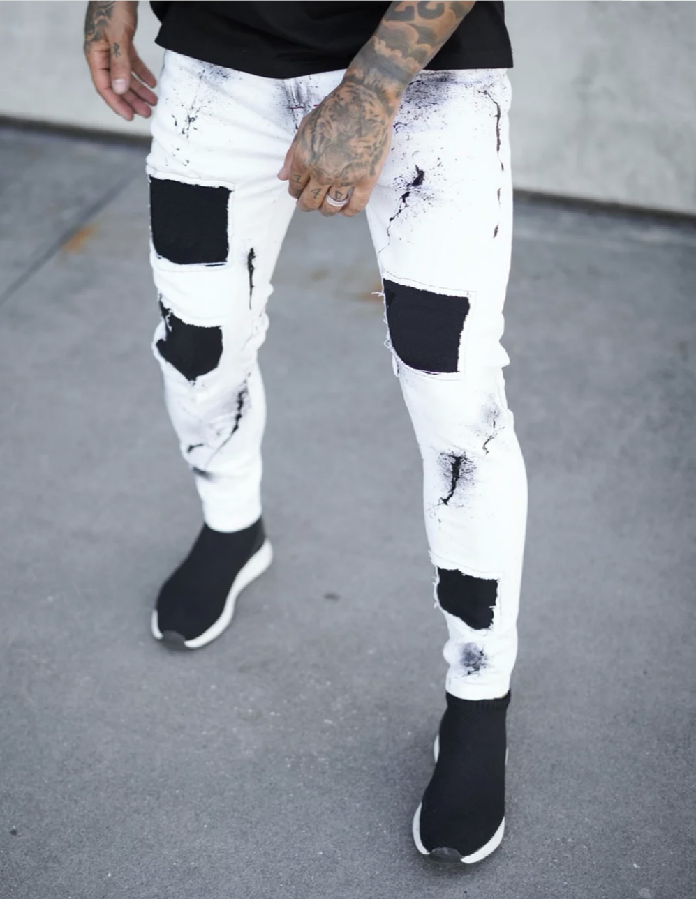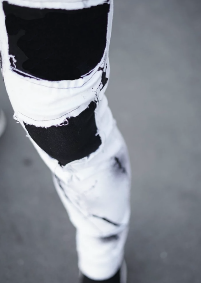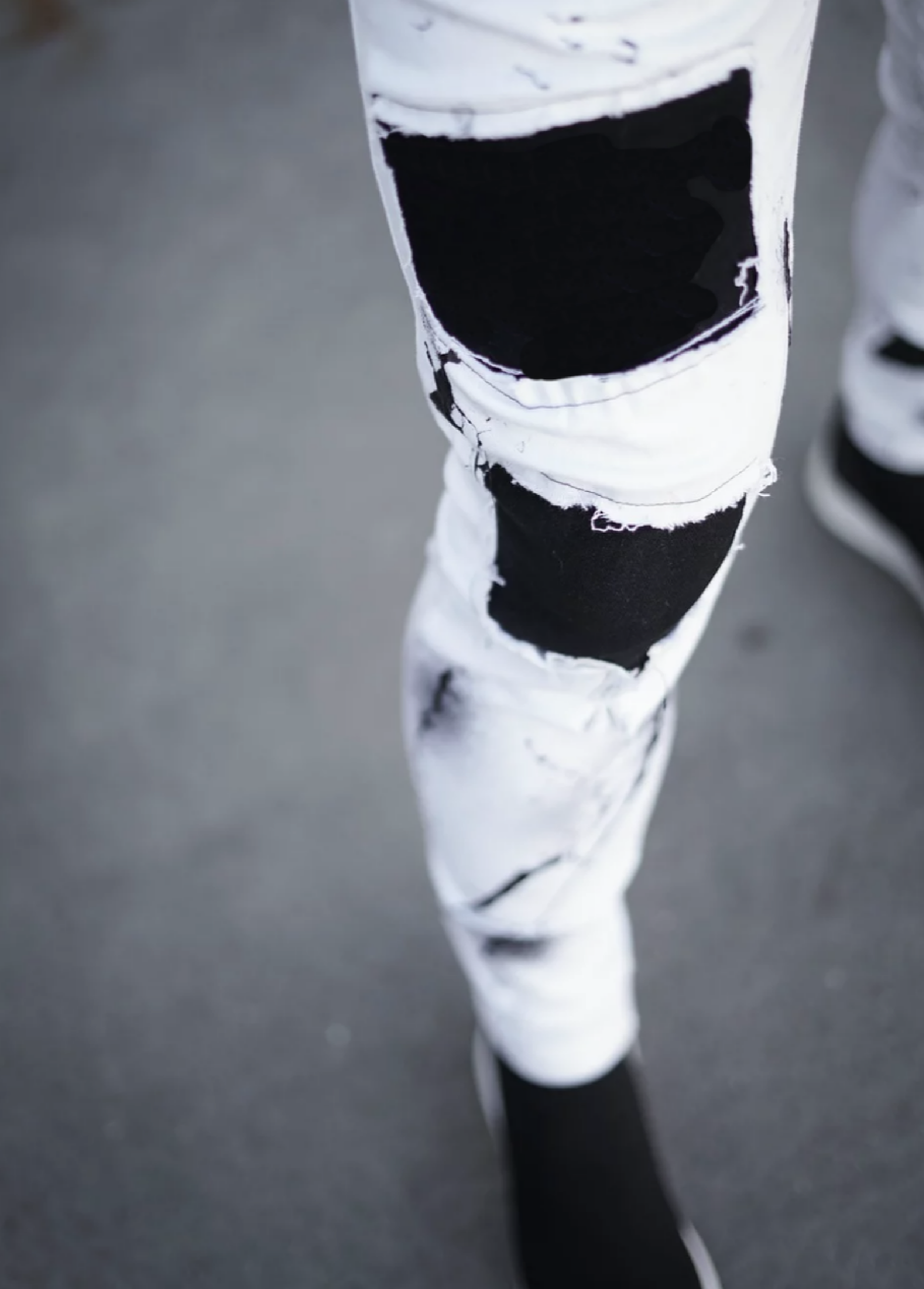 Calça Sarja/Jeans com elastano, com detalhes pigmentados em toda a peça e destróyed sobre as pernas, trazendo uma sobreposição interna preta que cria um contraste único e um diferencial exclusivo para este modelo. Uma peça feita para quem tem estilo, conforto e muita personalidade.