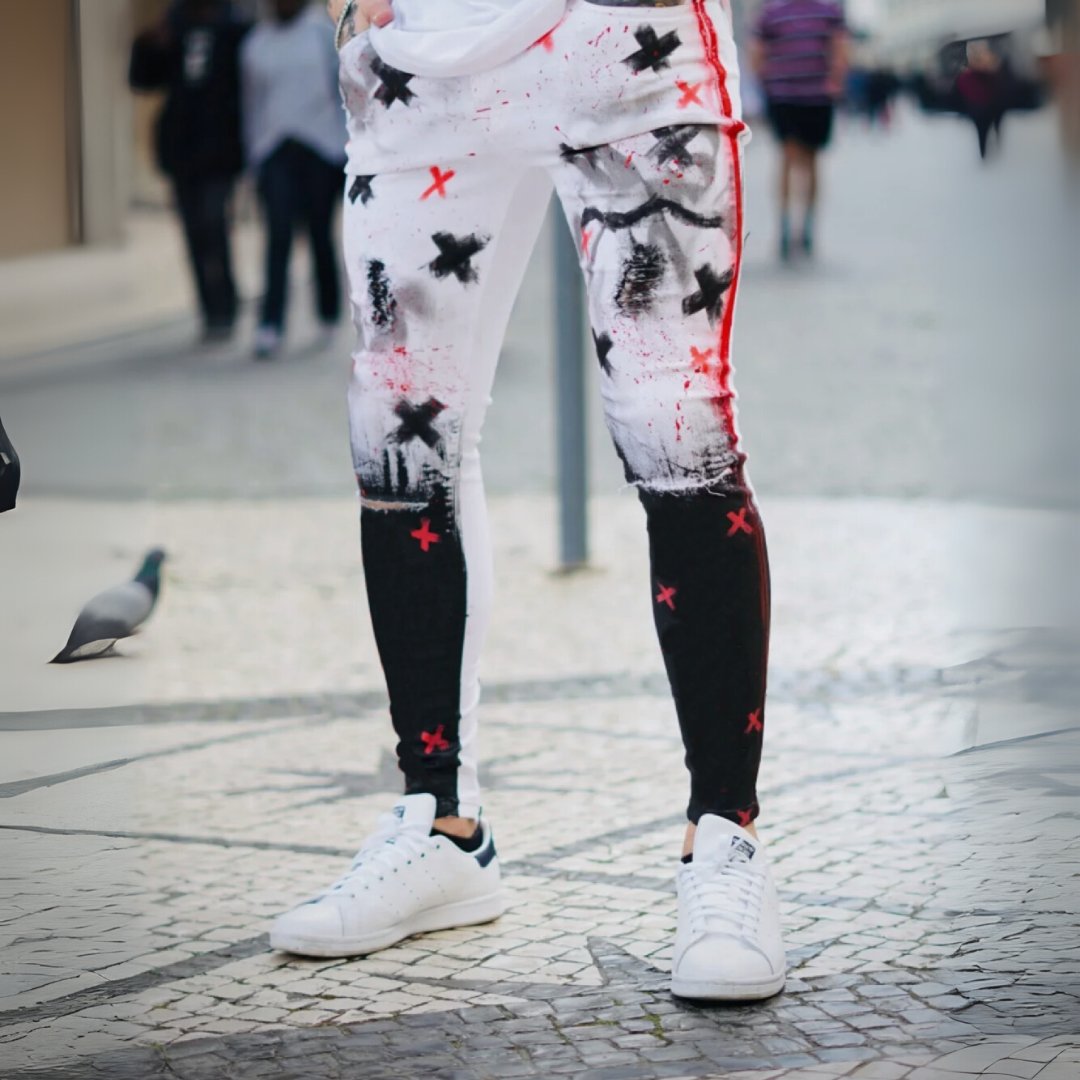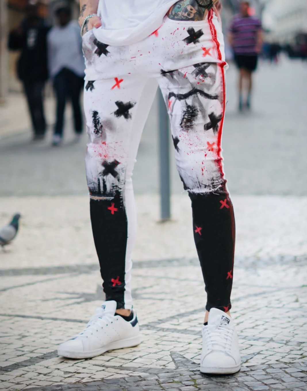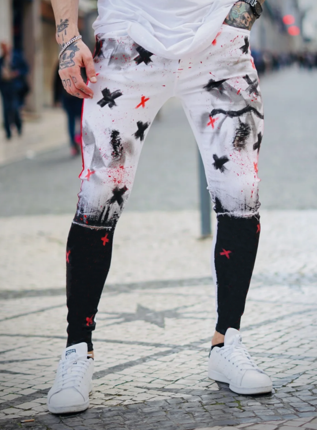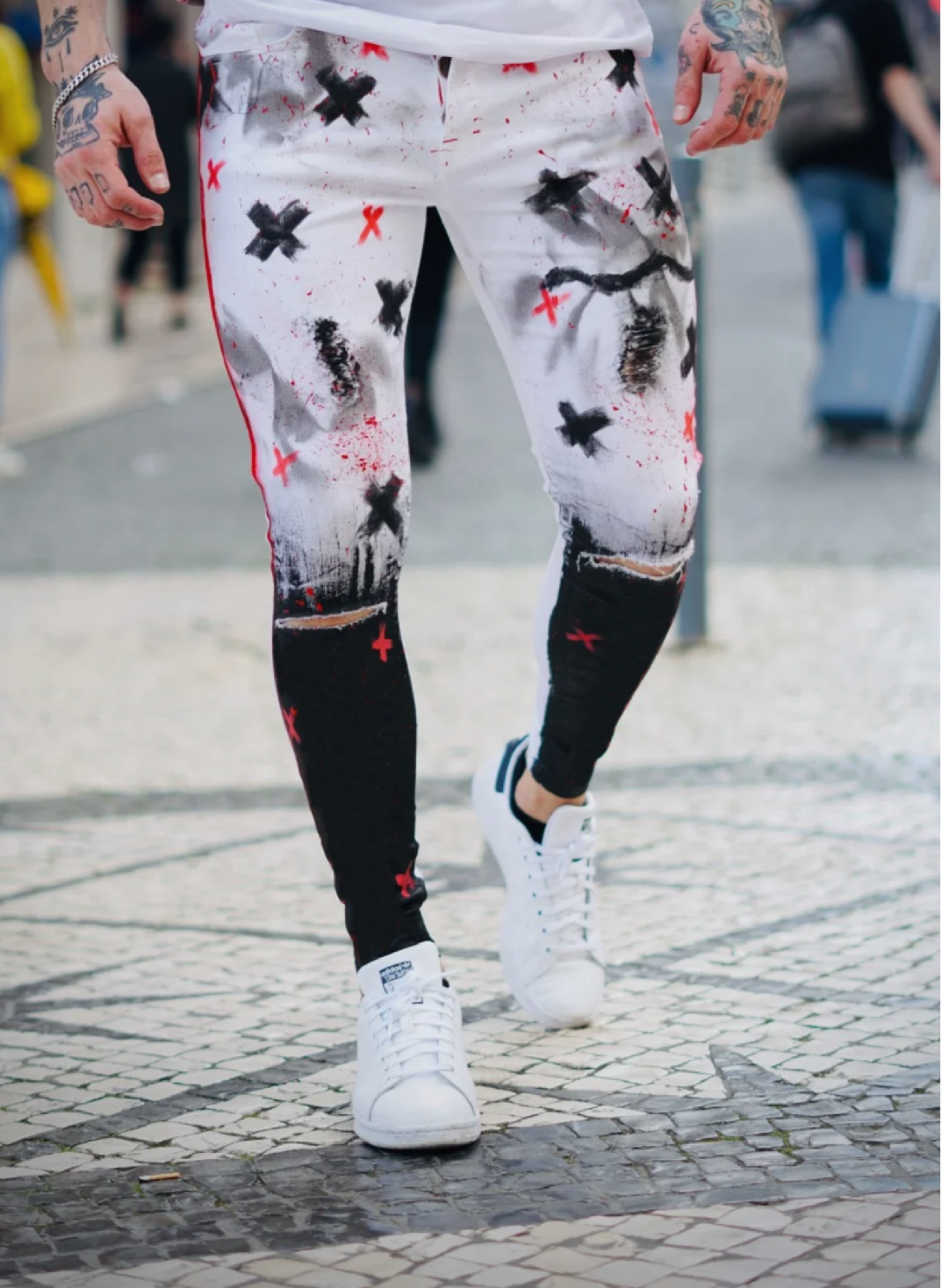 A calça Sarja com elastano apresenta detalhes tinturados em tons de preto e vermelho, com leve destróyed sobre os joelhos e zíper na barra, trazendo um toque de estilo único e autêntico. Sua composição oferece toque suave e conforto, perfeita para quem valoriza praticidade sem abrir mão da elegância.