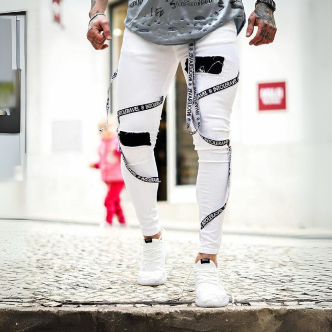 CALÇA BRANCA SKINNY SUSPENDERS TRACKS