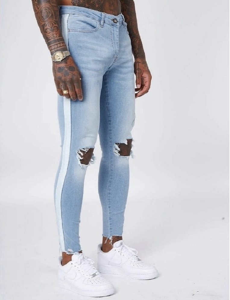 Detalhes que encantam: acabamento destruído nos joelhos, barra desfiada, faixa branca lateral, dois bolsos frontais, dois traseiros, fechamento por zíper e botão, além do caimento moderno que alia conforto e estilo em uma peça única.