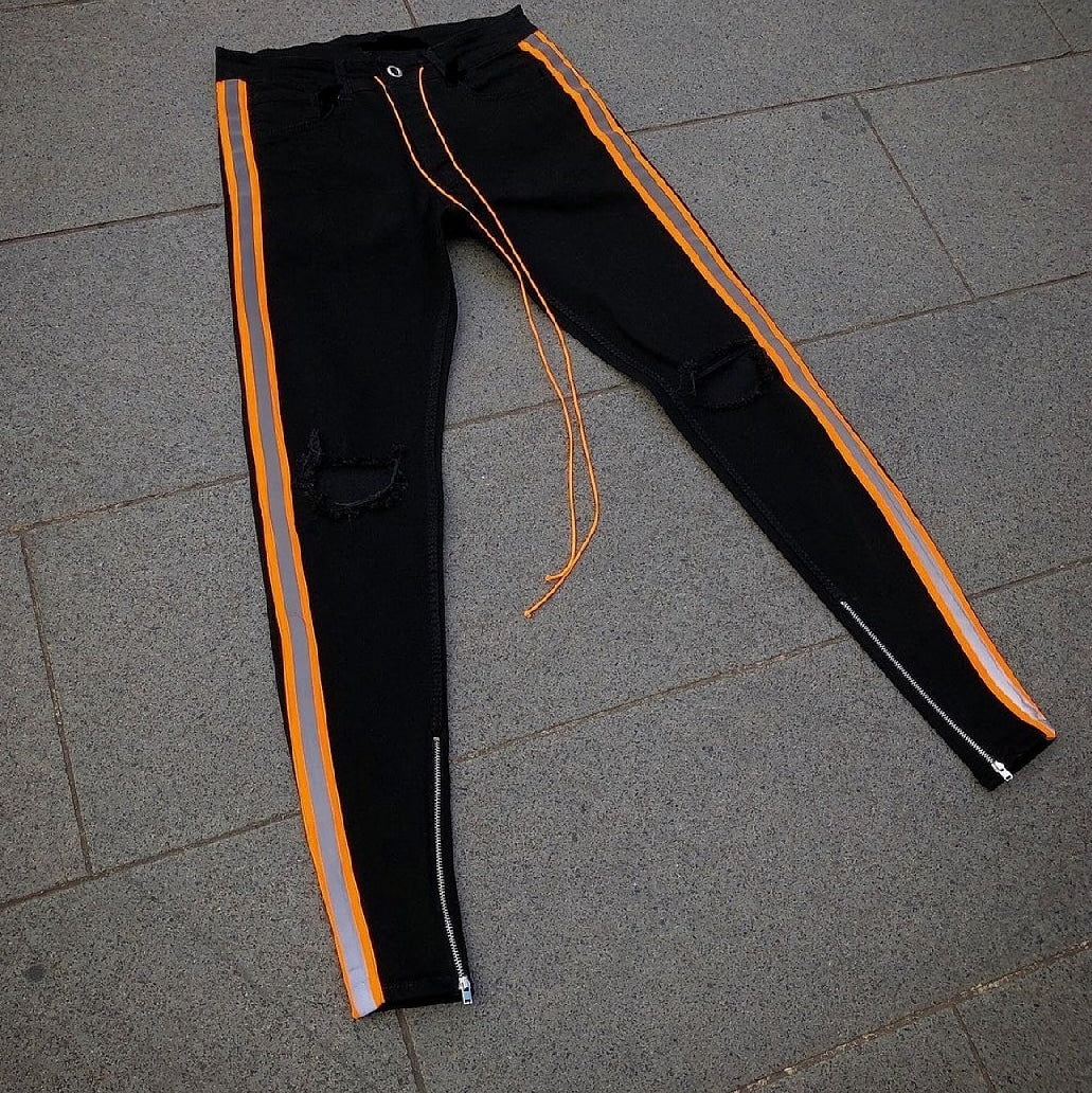 CALÇA JEANS BLACK-ORANGE