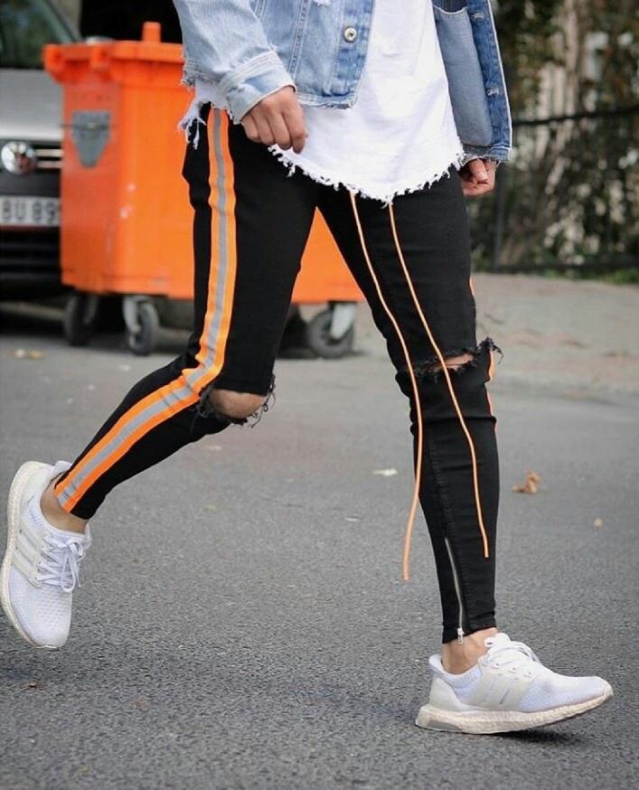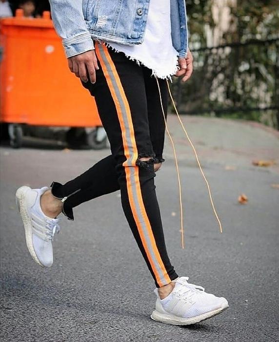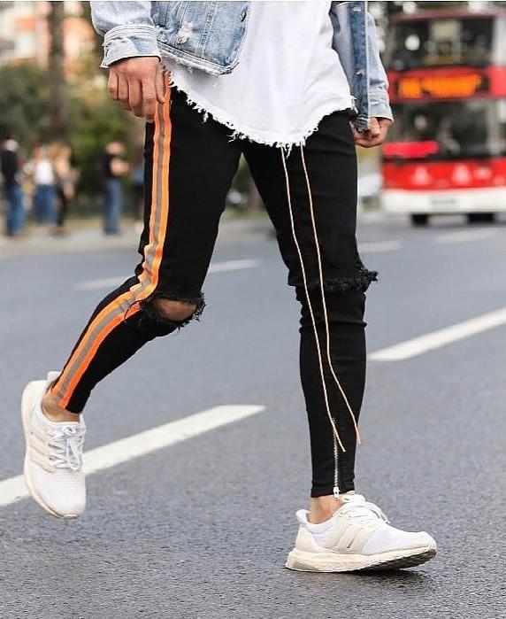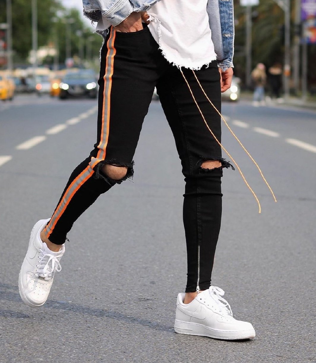 Calça Jeans Skinny com Elastano, Faixa Bicolor Neon, Destroyed e Cordão no Cós – O Modelo Mais Vendido da Loja, se você procura uma peça exclusiva, com visual marcante e cheia de atitude, essa calça jeans skinny com elastano é a escolha ideal. Número 1 em vendas na nossa loja, ela traz uma combinação de elementos que a tornam única: faixa lateral bicolor em cetim neon nas cores laranja e cinza, detalhe destroyed sobre os joelhos, zíper na barra e cordão ajustável no cós.