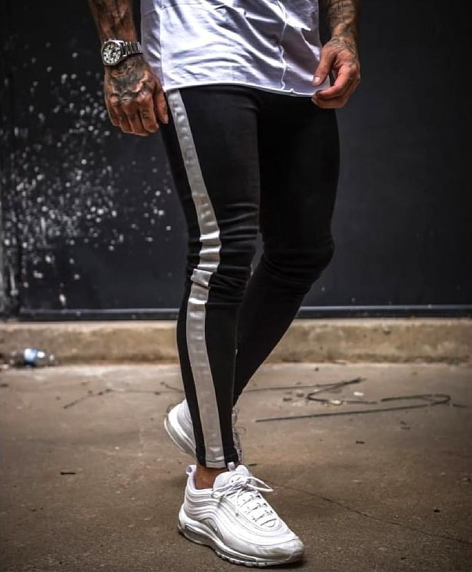 CALÇA JEANS BLACK FAIXA ACETINADA GREY.