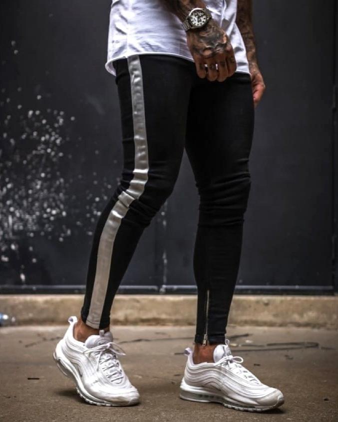 Detalhes que fazem a diferença: modelagem skinny/cropped atual e estilosa, faixa lateral acetinada em tom cinza que adiciona elegância, zíper funcional na barra com visual urbano, dois bolsos frontais e dois traseiros, fechamento por zíper e botão resistente, além de um caimento pensado para oferecer conforto, versatilidade e destaque.
