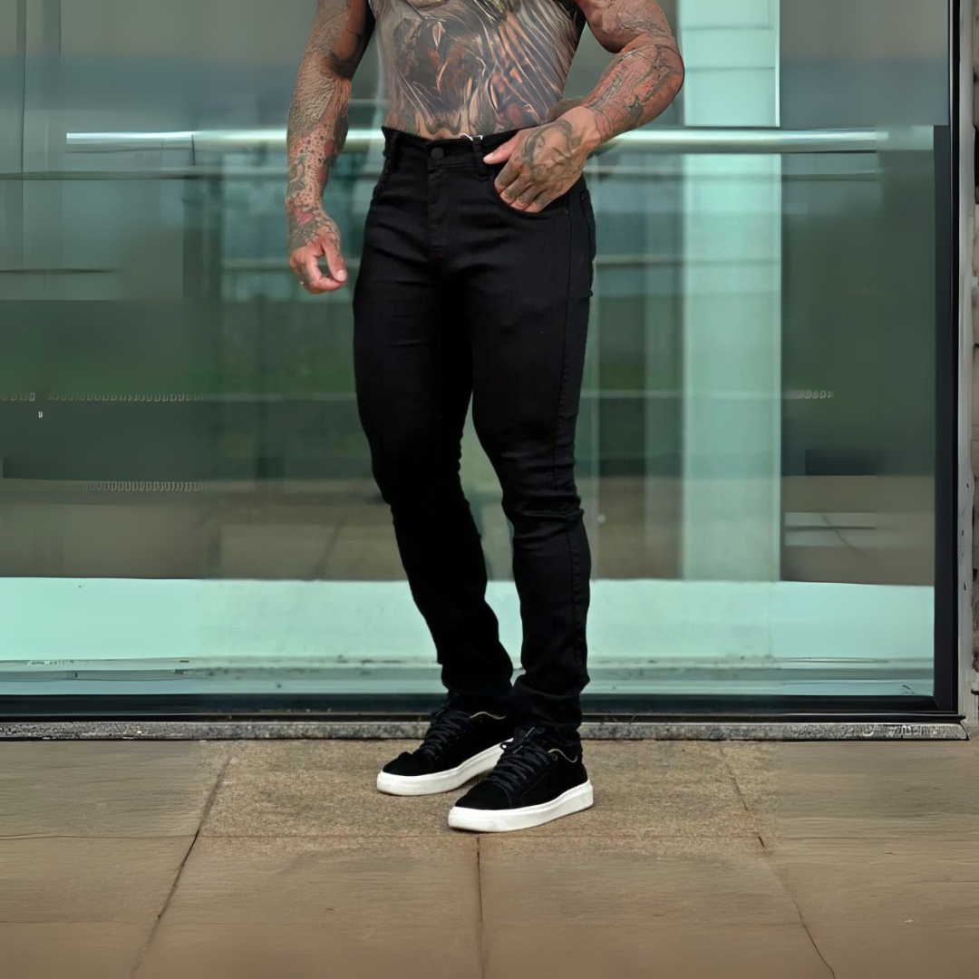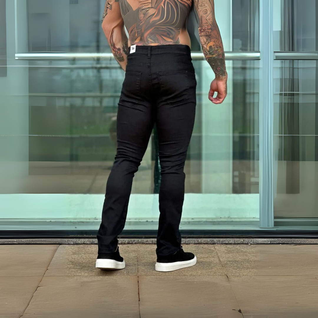 Calça Jeans All Black com Elastano – Estilo, Conforto e Versatilidade em Uma Só Peça, descubra a união perfeita entre estilo moderno e conforto absoluto com a calça jeans all black .