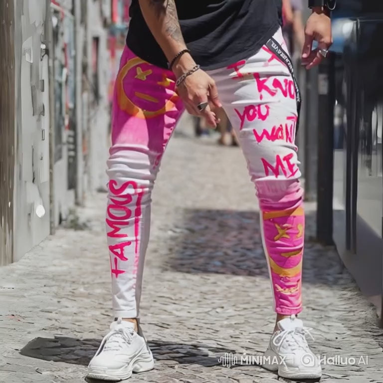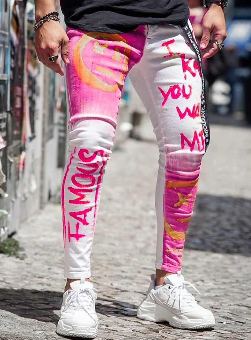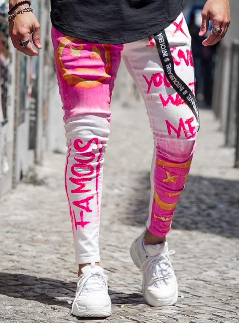A calça Sarja/Jeans com elastano traz um diferencial exclusivo com detalhes colors rosa pink e escrita pigmentada feita à mão, que garantem um visual único e cheio de personalidade. Uma peça destinada para quem tem estilo, confortável e super estilosa.